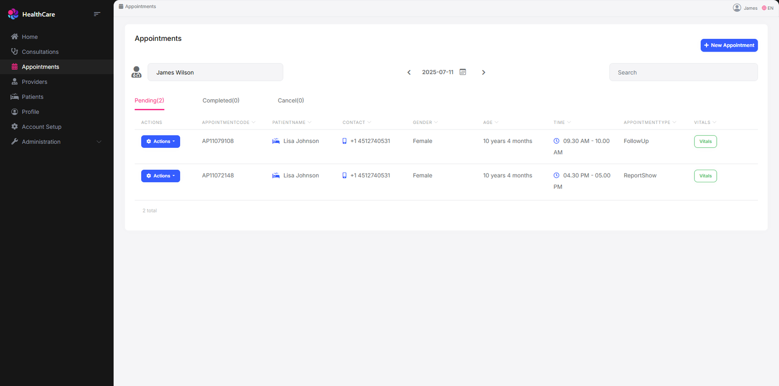 Centralized dashboard for appointments, patients, and consultations.